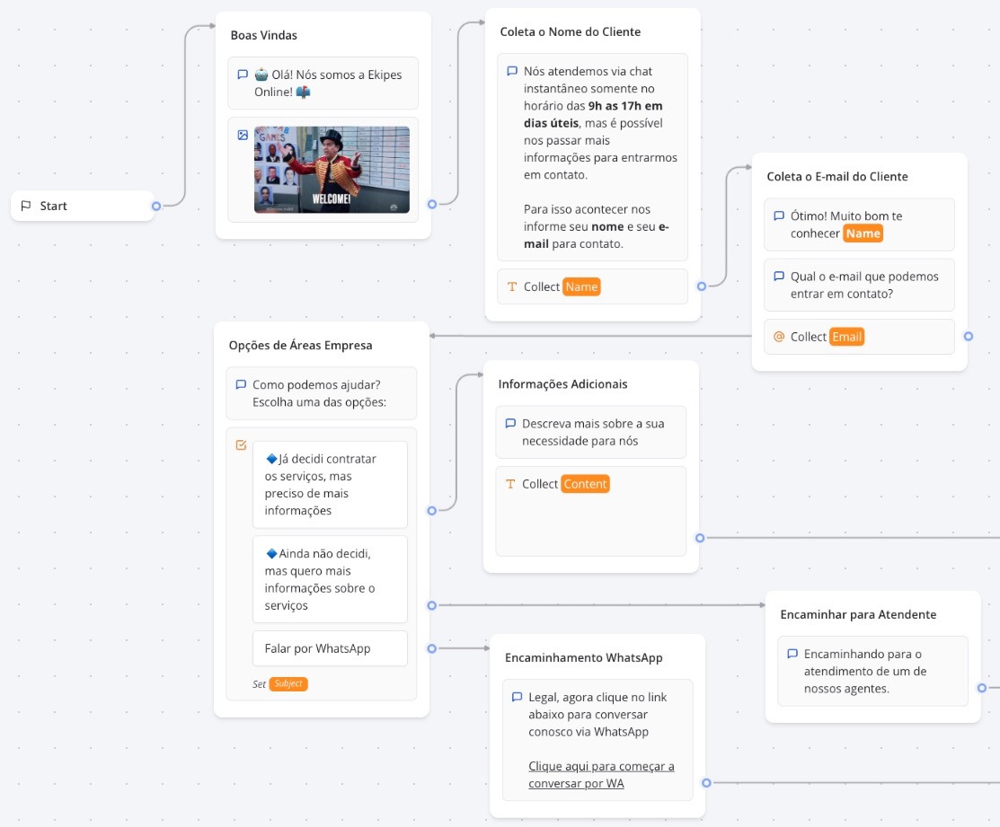 A criação e alteração do Chatbot são executadas por nós com os requisitos enviados e cobradas dependendo da necessidade. Além da criação ou configuração existe uma cobrança fixa mensal de manutenção.